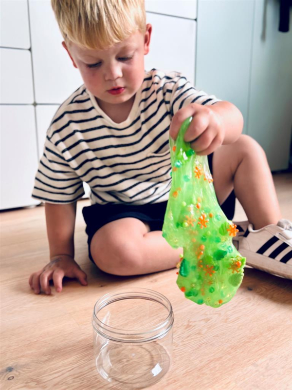 Beleef plezier op Juraformaat met Crazy Aaron's® Slime Charmers™ Dino Dew. Met dit felgroene slijm en bedels en kralen met dinosaurusthema creëer je een wereld die miljoenen jaren oud is. Meng, rek en creëer met deze bedels met dinosaurusthema . Dus creëer je eigen wereld waarin dinosaurussen heersten met Slime Charmers™ Dino Dew!