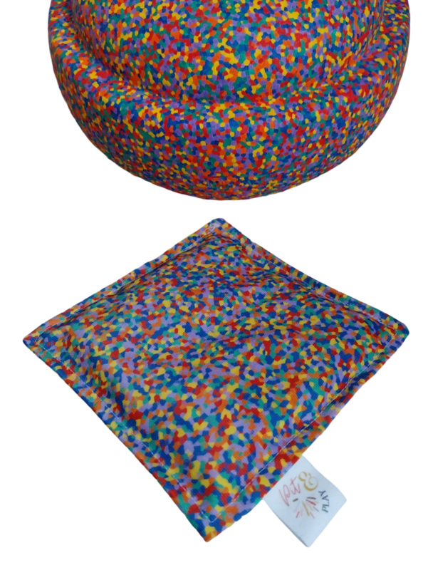 Hoe gaaf is dit regenboog confetti pittenzakje? Dit regenboog pittenzakje past super goed bij de confetti Stapelstein! Mix and match ze met de andere Stapelstein speelgoed pittenzakjes.