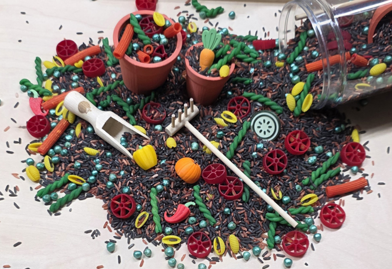 - SensoryMix zoals rijst, kikkererwten en gekleurde pasta´s.