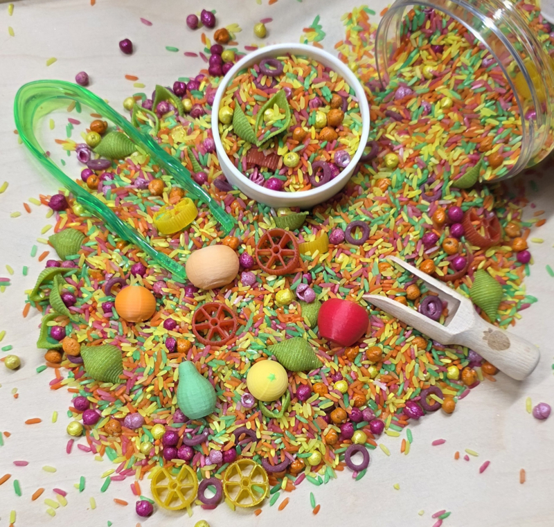 • SensoryMix zoals rijst, kikkererwten en gekleurde pasta´s.