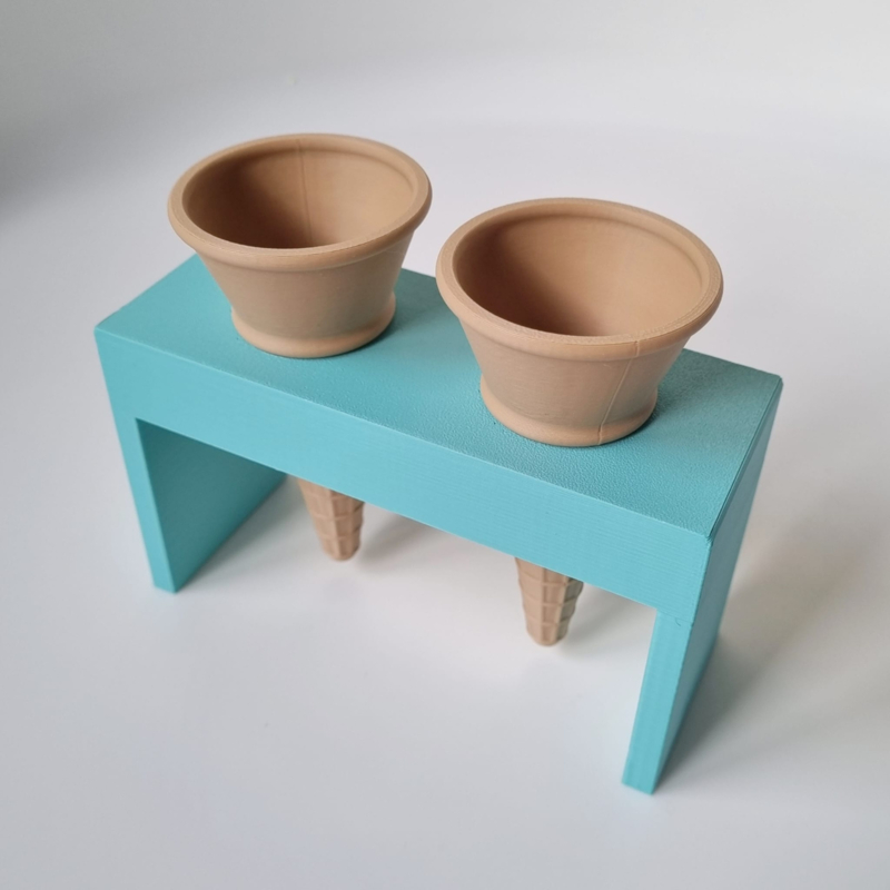 2 pla ijshoorntjes platte punt2x ijsje met platte punt (7x5,5cm) gemaakt van PLA. Super leuk bij de Tropical rijst, MagicSand, playfoam en nog veel meer sensorisch matteriaal